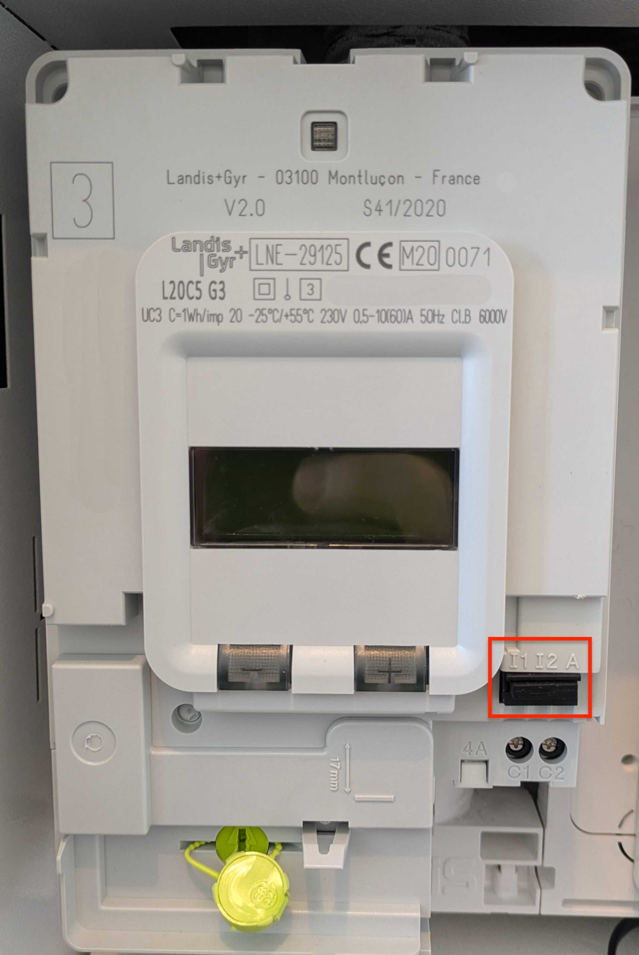 Les bornes de télé-information du compteur Linky sont accessibles en retirant le capot du compteur Linky.